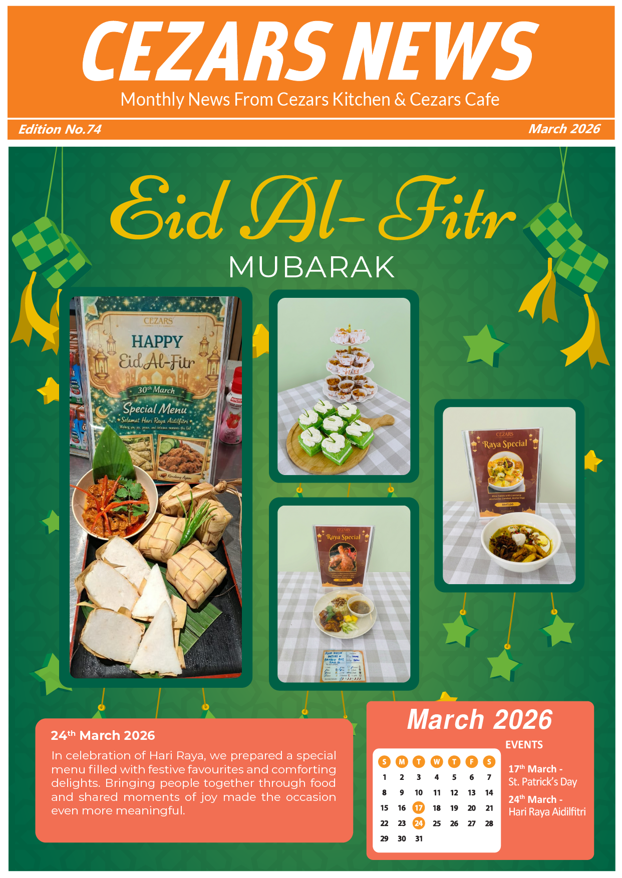 Cezars Kitchen Newsletter – Edition 74 Published On - March 30, 2026 admin Monthly Newsletters Dear All, Check out the latest release of our March Newsletter!